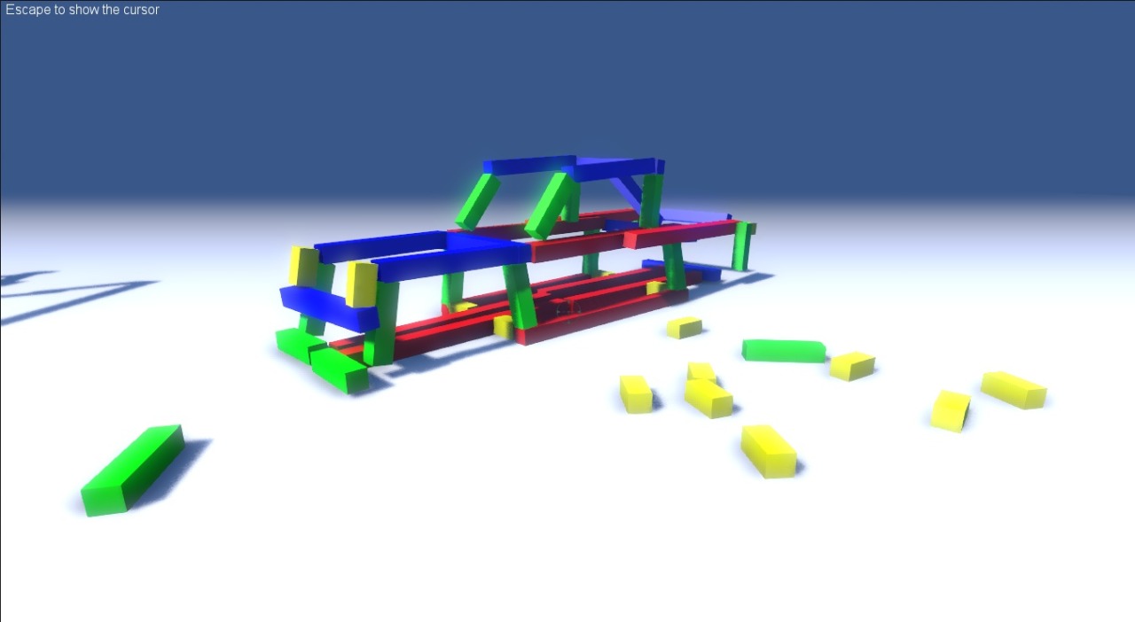 Here’s a demo of the construction game I’ve just started making. You can fit parts together to build machines, vehicles, aircraft, buildings or anything else. Right now it’s just a sandbox demo, but I have plans to eventually turn it into a proper game!