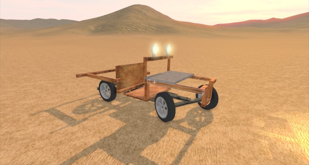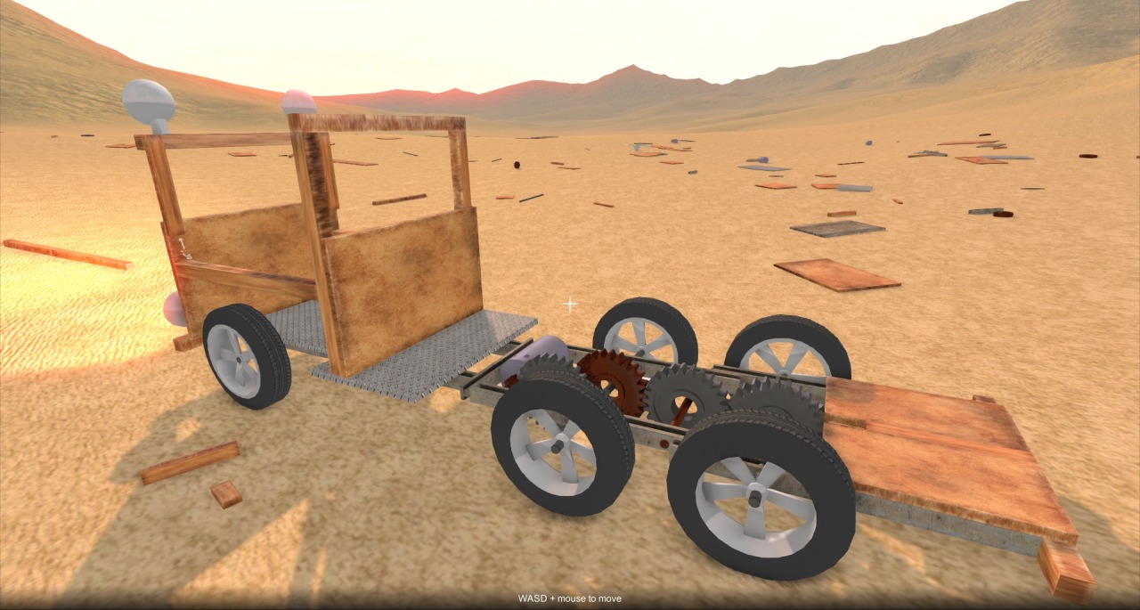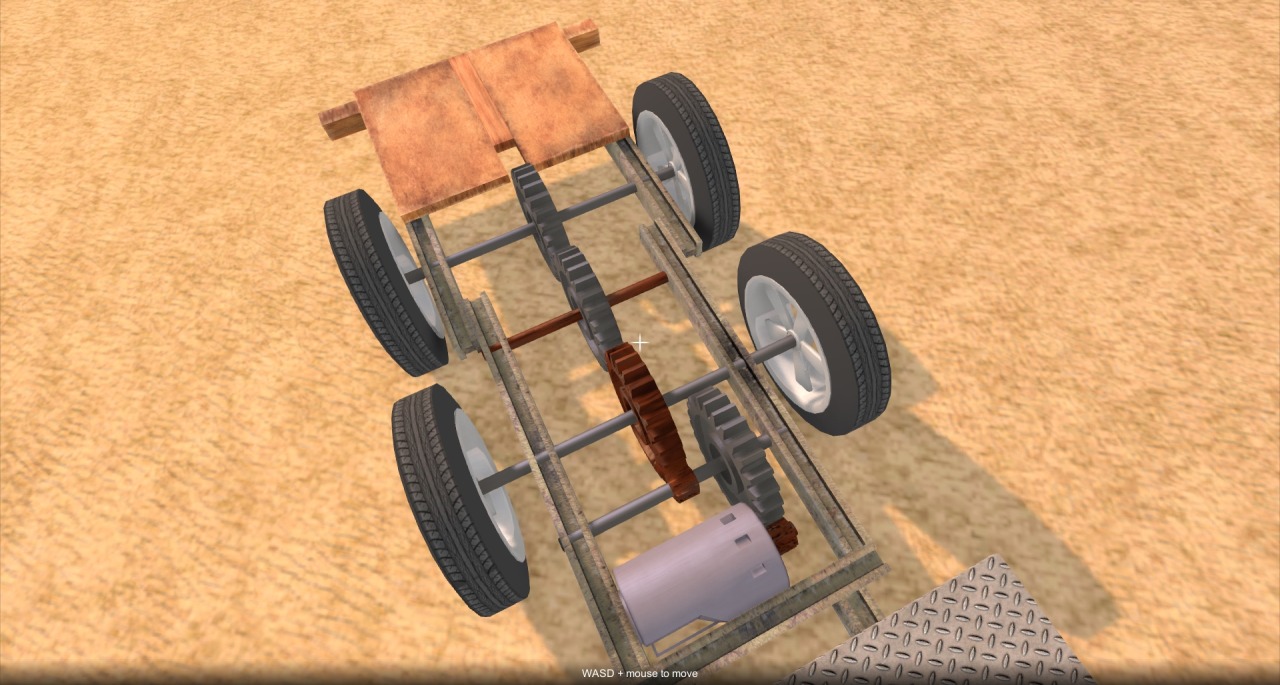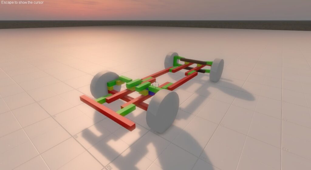 Most recently I’ve been working on the gear torque transfer code to improve behaviour at low rpm with high torque loads. These high torque situations arise when you build things like this fairly heavy 4WD truck or the walking creature that has to lift it’s own weight. I’m finding it’s hard to avoid some gear slip without incurring stability problems (jittery rotations), but I’ve definitely made some progress.