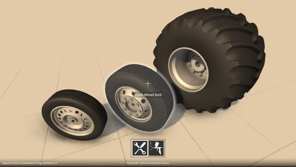 I’ve also been working on how parts align together during construction, so that this system works better with the new parts I added. This was mainly to prevent axles penetrating through parts, and to make the alignment behaviour a bit more intuitive. Some parts (such as motors) are now slightly more restrictive in how they can attach to other parts. On the other hand, the spring damper barrel and piston parts are now less restrictive in that they can now be attached together at several different alignment points, which allows for different “default” spring extensions when the construction is frozen.