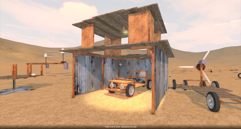 Now that you can save progress in the game, it somehow feels more worthwhile to build more stuff! Here’s a rickety shed, with an assortment of machines…